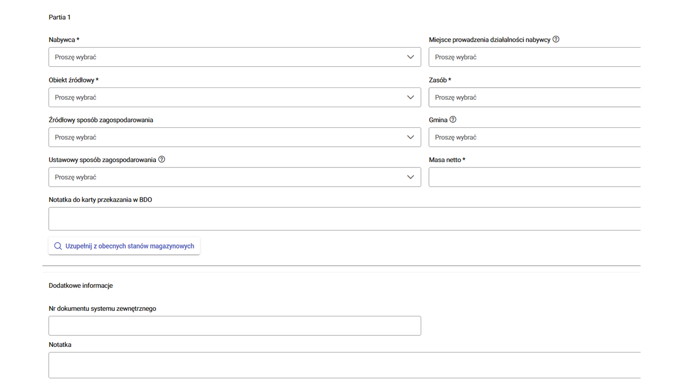 - ograniczenie liczby błędów (kontrola posiadanych limitów, decyzji oraz brak konieczności wielokrotnego wprowadzania danych – kontrahenci, numery rejestracyjne pojazdów, kody odpadów, MPD, obiekty i inne elementy dostępne z list rozwijanych itp.)